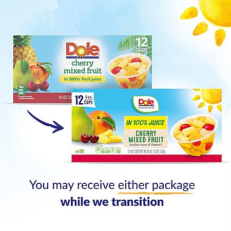 Model: Dole Fruit Bowls Cherry Mixed Fruit in 100% Juice, Back To School, Gluten Free Snack, 4oz, 12 Cups, Packaging May Vary