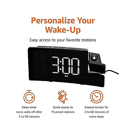 (NEW) AmazonBasics Projection Alarm Clock with Phone Charging, FM Radio, Battery Backup - $9.99 - Free shipping for Prime members