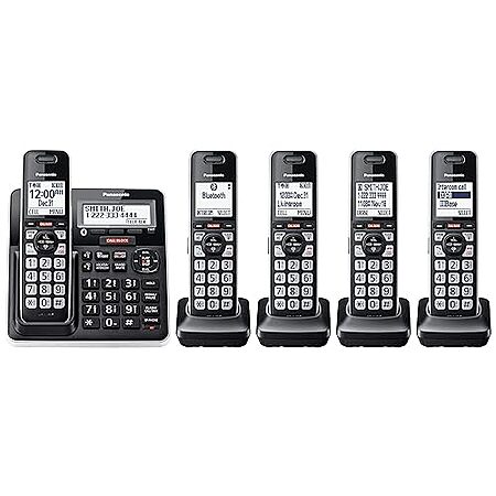 $116.99: Panasonic Cordless Phone with Advanced Call Block, 5 Handsets - KX-TGF975B (Black with Silver Trim)