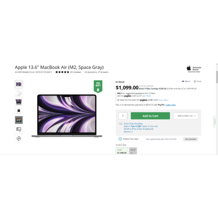 Apple MacBook Air: 13.6", M2, 16GB RAM, 256GB SSD (Space Grey)