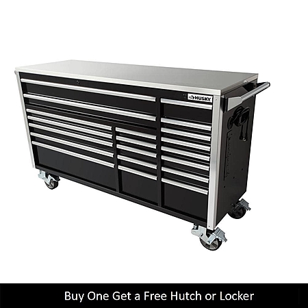 Husky 72 in. W x 24.6 in. D Professional Duty 20-Drawer Mobile Workbench Cabinet with Stainless Steel Top in Black HPRO72MWC20BLK - $1747