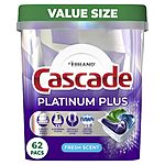 62-Count Cascade Platinum Plus ActionPacs Dishwasher Detergent Pods (Fresh) $15.30 + Free Shipping w/ Prime or on $35+