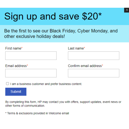 Note: Wait ~10 seconds for a window to pop up offering unique $20 Off $65+ email code when you sign up for emails; if it doesn't show up, try going to their main