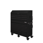 The Husky 56 in. W, 22 in. D with 18-drawers Tool Chest and Cabinet Set is a heavy-duty, 19-Gauge steel, tool storage unit that is rated for 3,000 lbs. loading capacity. This tool chest and cabinet set with 18-drawers provide 42,876 cu. in. of storage. The heavy-duty soft closing drawers are rated to 120 lbs. each and are equipped with safety latches on each drawer. The extra deep bottom drawers have double 120 lbs. glides. The full length drawer provides convenient storage for longer items and the small drawers keep smaller items in a confined space. Drawer liners are included to protect and keep your tools in place. This unit is equipped with 2 power centers 1 in. the chest area and 1 on side of cabinet wall that has 6 outlets and 2 USB ports, making it easy to keep all of your tools charged. For added security, both the chest and cabinet are fitted with a locking key system. This toolbox weighs in at 604 lbs. and has six 6 in. x 2 in. heavy-duty industrial grade casters that glide with ease around your work area