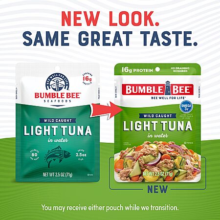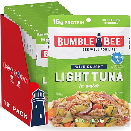 12-Count 2.5-Oz Bumble Bee Premium Light Tuna Pouch in Water on sale for