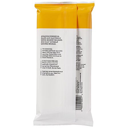 AmazonCommercial Glass and Electronic* Wipes are made with a non-streak formula to produce a beautiful sparkly shine that does not leave behind residue. Quickly and easily clean glass and electronic surfaces to a sparkly shine that dries fast. Remove smudges, fingerprints, and dust on glass, mirrors, windows, windshields, and glass electronics surfaces. An ideal choice for residential or commercial spaces such as kitchens, bathrooms, offices, retail, restaurants, long-term care facilities, hospitality, and education.