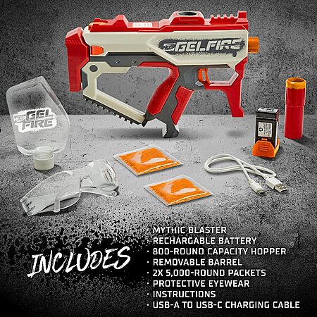 Expired: Amazon.com: Nerf Pro Gelfire Mythic Full Auto Blaster & 10,000 Gelfire Rounds, 800 Round Hopper, Rechargeable Battery, Eyewear $29.99