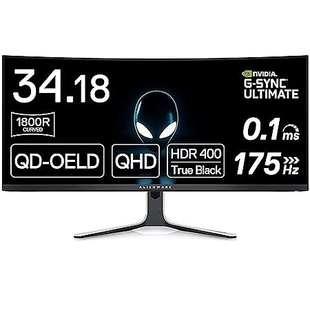 Amazon[amazon.com] has Alienware AW3423DW Curved Gaming Monitor 34.18 inch Quantom Dot-OLED 1800R Display, 3440x1440 Pixels at 175Hz for $896.99. Shipping is free.