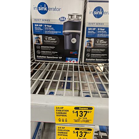 YMMV $137.87 InSinkErator Evolution SpaceSaver XP 3/4-HP Continuous Garbage Disposal $137.87