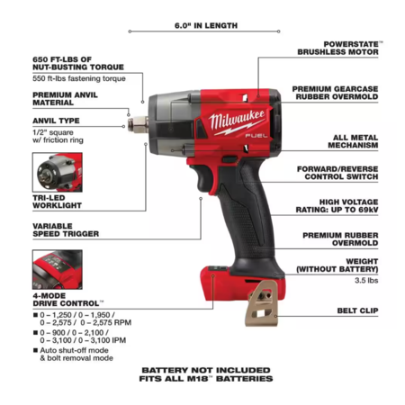 note that the m18 fuel 1/2 version has higher torque than the 3/8 version (650 ft-lb vs 600 ft-lb) while the m12 stubby has same torque for both 1/2 and 3/8 version (250 ft-lb)