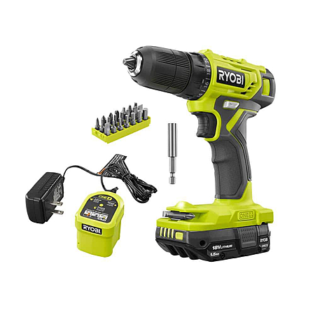 RYOBI ONE+ 18V Cordless 3/8 in. Drill/Driver Kit with 21-Piece Accessory Kit, 1.5 Ah Battery, and Charger PDD209KSB - $39.99