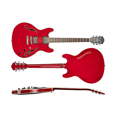 Here we go - it's been a while since this one has been in stock in red, and even longer since it's been on a sale this good! (Very similar to the Gretsch Streamliner center block deals that have been cropping up, but for about a hundred bucks less.) And - the Indo gig bags are a nice free plus - they're actually pretty nice!