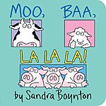 • Sandra Boynton's wildly popular, Moo, Baa, La La La!, features her lively and spirited text that introduces readers to animals and the noises they make. A quiet final spread begs the little ones and their caregivers to OINK!, SNORT!, QUACK!, and MEOW! in a noisy animal ending.