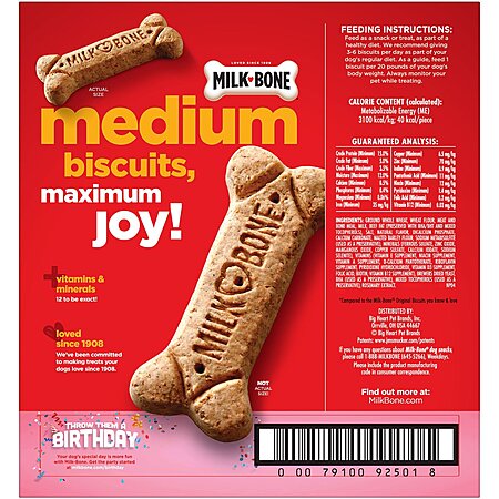 I used to give Milk Bones as a nightly treat, but switched to Kirkland (Costco) brand because they are better quality. You can order them directly from Costco without having a membership -- it will cost you an extra 5% and shipping is very low. They are much more expensive if you order them anywhere else.