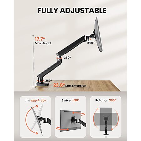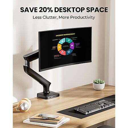 ErGear Single Monitor Arm Desk Mount w/ 3-In-1 USB 3.0 Hub (17-34" Monitor) for