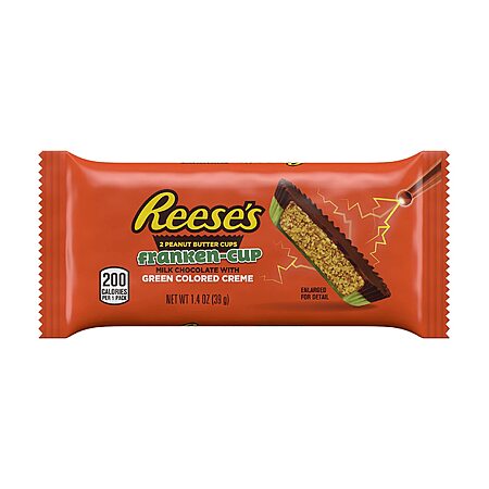 • Contains twenty-four (24) 1.4-ounce packs of REESE'S Franken-Cup Milk Chocolate Peanut Butter with Green Colored Creme Cups Candy in a bulk box