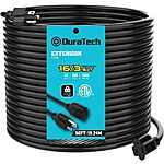DuraTech Extension Cord 50 ft, Outdoor Extension Cord, 16/3 SJTW, 13 Amps, Heavy Duty Extension Cord for Power Tools, Black $11.99