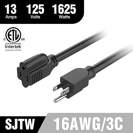 • Outdoor Extension Cord: The power extension cord is 50 feet long with a maximum electrical rating of 13A/ 1625W/ 16/3 SJTW. 100% pure copper conductor. Ideal for use with corded electric tools, lighting decorations