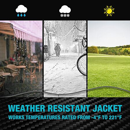 • Heavy Duty Power Cord: The extension cord works temperatures rated from -4°F to 221°F. Premium flexible vinyl jacket provides protection of the cord against moisture, abrasion, water, severe weather, kink