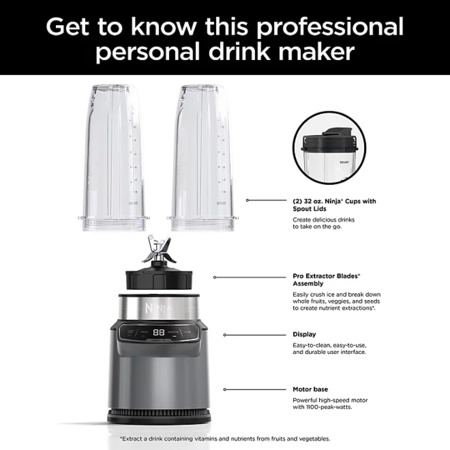 Ninja Nutri-Blender Pro with Auto-iQ, Personal Blender, CL401A 39.98 $39.98