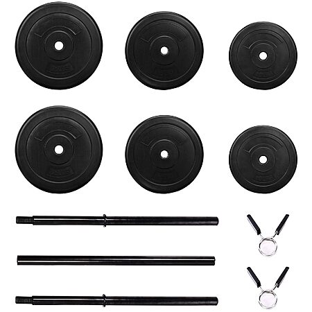 Signature Fitness 100-Pound Weight Set for Home Gym with Six Plates and 1x 5FT Standard Barbell, Comes with Spring Locks $49.99 Amazon