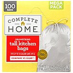 100-Ct 13-Gallon Walgreens Complete Home Drawstring Tall Kitchen Trash Bags