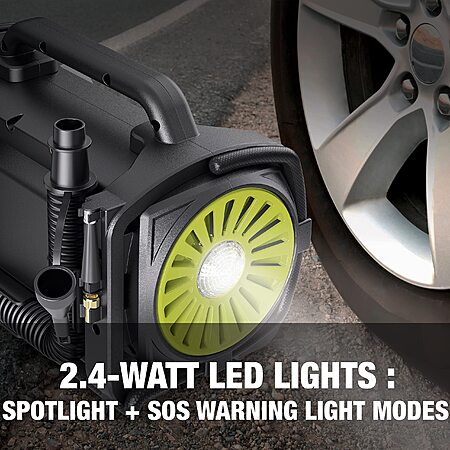2 Modes: High Volume Output & High Pressure Output, 3-Setting Digital Pressure Gauge, A.C./D.C. Settings, Onboard Accessory Storage
