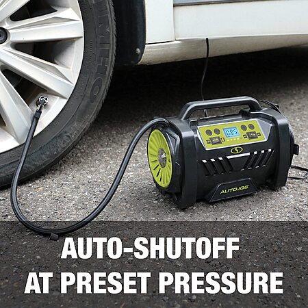 Model: Auto Joe ATJ-AIR1-HYB Hybrid 12-Volt/110-Volt AC High Volume Tire Inflator/Deflator, w/Digital Pressure Gauge, Tire Air Chuck Adaptor, Sports Pin, General Inflatable Valve, & Auto Shut Off