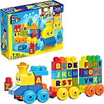 Toddlers can build the ABC Musical Train and hop on the fast track to learning their ABCs. Little builders can connect to the 3 rolling wheelbases together and stack the letter blocks on top to learn the alphabet or even build whole words. Then, your little one can press down on the smokestack to discover real train sounds and a song to add musical magic to their alphabet adventure.