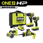 RYOBI ONE+ HP 18V Brushless Cordless Compact 4-Tool Combo Kit with (2) 2.0 Ah Batteries, Charger, and Bag PSBCK104K2 - The Home Depot $149
