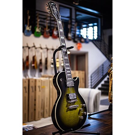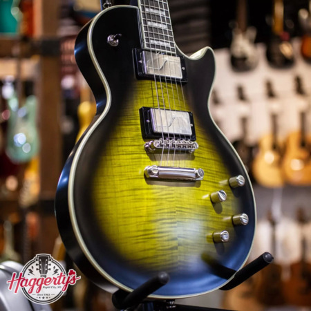 Haggerty's Music has a floor model Epiphone Les Paul Prophecy Electric Guitar in Olive Tiger Aged Gloss on sale for $652.50 after using coupon code