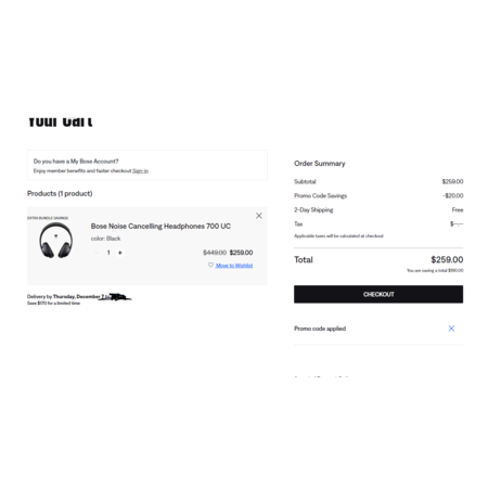 Bose Noise Cancelling Headphones 700 UC + Free Shipping - $259 w/code