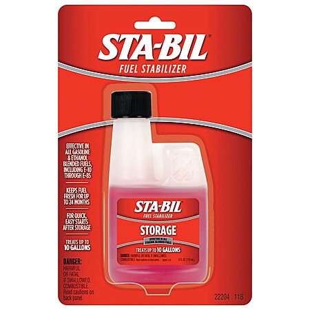 Directions - Pour contents directly into the fuel tank before adding gasoline. Use 1 oz of STA-BIL Storage for every 2.5 gallons of gas. After adding the fuel, run the engine for 5 minutes to treat the entire fuel system.