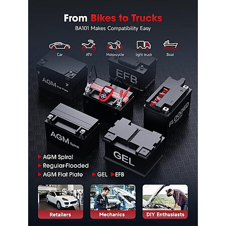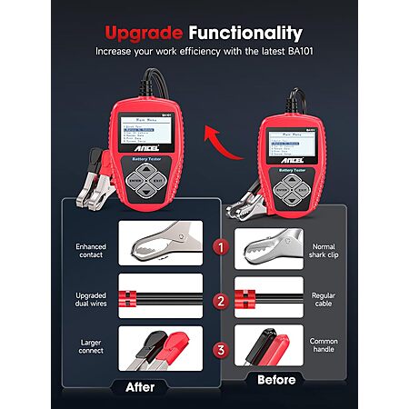 ANCEL BA101 12V Car Battery Tester - Digital Automotive Batteries & Alternator Diagnostic Tool, 100-2000 CCA Load Capacity, Charging & Cranking Analysis $23.49