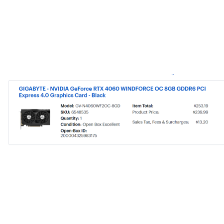 This is more of an FYI and YMMV situation but I just thought I would share. I'd give Open Box Excellent a try since most of the time the packaging has never been opened. I ordered an Open Box Excellent 4060 since at $240 it would be what should have been the cost of this card at launch. Anyhow, I ordered it and ended up getting an unopened 4060. I think if there's a lot of people who get quick buyer's remorse when they get the 4060 at $300 considering that the 3070 performs better at the same price.