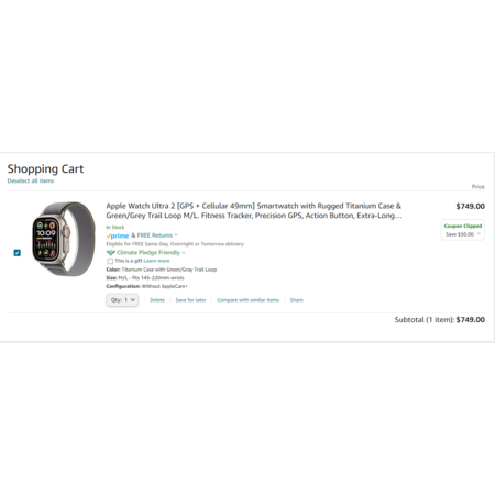 Apple Watch Ultra 2 GPS + Cellular 49mm Smartwatch w/ Rugged Titanium Case