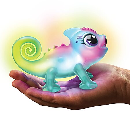 LIGHT UP, COLOR CHANGING CHAMELEON: Sunny is an interactive chameleon that lights up and changes color to their moods, just like a real chameleon!
