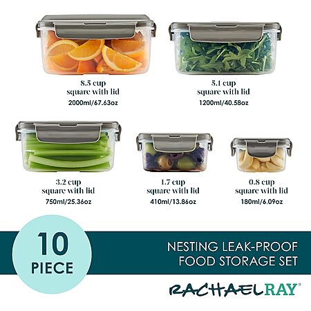 10-Piece Rachael Ray Stacking Leak-Proof Food Storage Container Set (5 Containers w/ 5 Lids) $13.99 + Free Shipping w/ Prime or on $35+