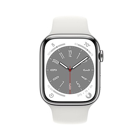 Apple Watch Series 8 GPS + Cellular 45mm Silver Stainless Steel Case with White Sport Band - M/L - $474.99 w/Red Card, $499.99 w/Target Circle