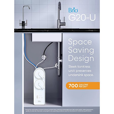 Brio Reverse Osmosis Water Filtration System, 700 GPD, 2:1 Pure to Drain, Tank-Less, Under Sink Faucet Mount $138.73