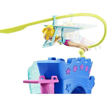 This Polly Pocket Splashin Fun Mermaid Pack Playset features water-themed activities 3-inch Polly and Margot dolls 2 mermaid outfits a surfboard snorkel and mask fins locket 2 pairs of shoes a submarine (attached) boat and more! Kids can fill the aquarium area with water (tap or bottled) and use the diving board to activate and move water in the tank. Put Polly or Margot doll in the tank with the snorkel and mask and fins or on the surfboard to ride the waves. There is also a submarine that pops out of the sandcastle and the top opens to fit Polly or Margot doll inside the submarine! Also ride the hang glider zipline slide down the slide swing on the seahorse swing and more! Take the zippy boat for a cruise too. Colors and decorations may vary. Dolls cannot stand alone. Makes a great gift for ages 4 years old and up.