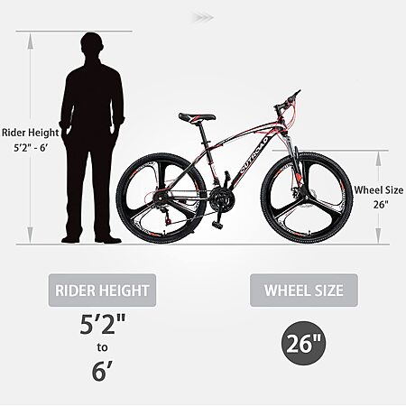 Unique color spray paint combination. Wheels width: 2 inches, 26 Inches fashion rims more safer and fastness. It comes with a 21-speed Shimano shifter and excellent front suspension that can handle hilly terrains. Recommended for rider's height 5'3 inch -6'0 inch. Max weight up to 330 lbs.