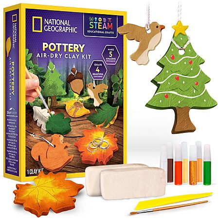 Model: NATIONAL GEOGRAPHIC Modeling Clay Arts & Crafts Kit - Air Dry Clay for Kids Craft Kit with 2 lb. Clay to Make 9 Art Projects, Clay Christmas Ornament Craft Kit, DIY for Kids 8-12, (Amazon Exclusive)