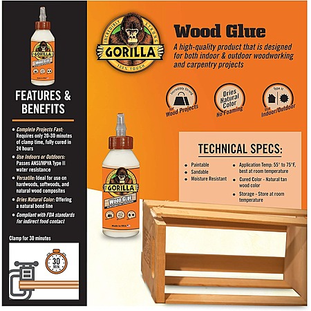 Gorilla Ultimate Waterproof Wood Glue, 18 Ounce, Natural Wood Color, (Pack of 1) https://a.co/d/cNdTmo3
