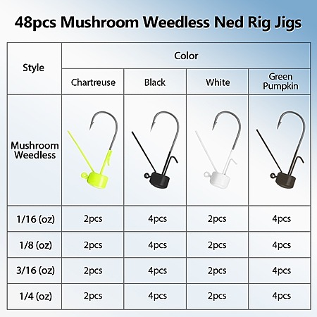 MadBite 48-Piece Mushroom Weedless Ned Rig Jigs Kit $7.99 + Free Shipping w/ Prime or $35+