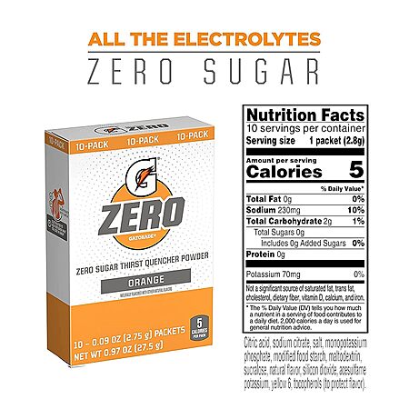 120-Count 0.10oz Gatorade G Zero Powder Packets (Orange) on sale for