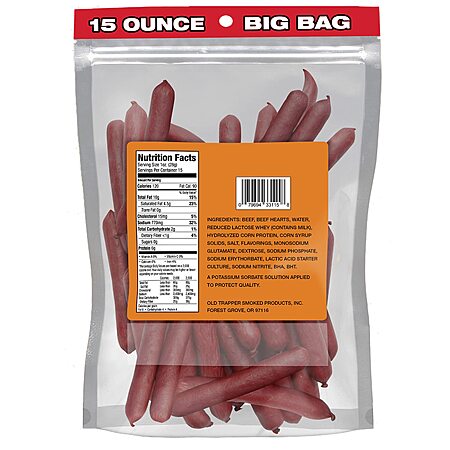 Old Trapper Original Deli Style All Beef Sticks | 6g of Protein | (15 Oz Bag) $9.97