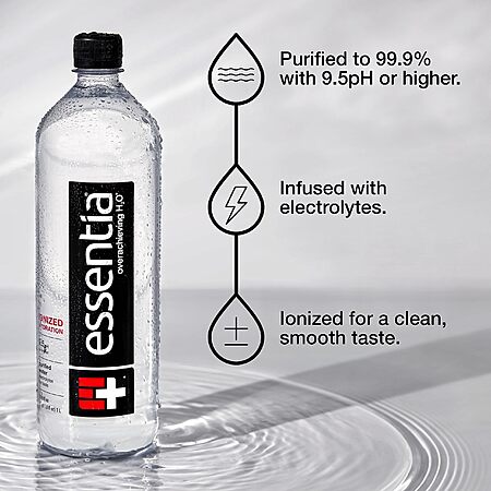 Model: Essentia Bottled Water, 1 Liter, 12-Pack, Ionized Alkaline Water:99.9% Pure, Infused With Electrolytes, 9.5 pH Or Higher With A Clean, Smooth Taste