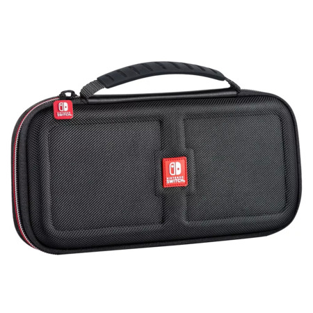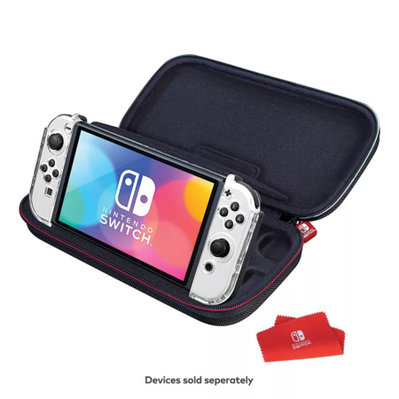 The Ultimate PLAY and STORE solution for your Nintendo Switch. This GOPLAY bundle protects your Nintendo Switch or Nintendo Switch OLED Hardware in this 100% Nintendo licensed Switch case manufactured to Nintendo's stringent standards by RDS Industries. The GOPLAY Traveler case durable hard-shell exterior protects against accidental drops or knocks, and the vacuum foamed felt lined interior holds the system and games securely in place. Most importantly, a padded divider is in place designed specifically to protect Switch's sensitive analog sticks. The GOPLAY GRIP improves game play via the comfort ergonomic rubberized grips that lessen game fatigue. The GOPLAY Grip also serves as a stable and secure viewing stand. BONUS: two multi-case cases are included that hold up to 8 games, two rubberized analog stick thumb covers for added comfort, and a micro fiber screen cleaning cloth. NNS82