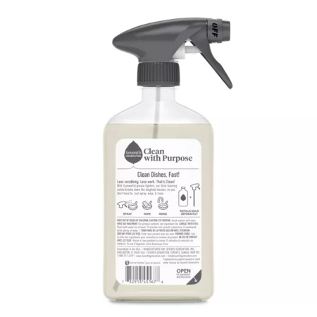 | Product Description: | Wouldn’t it be great if you could get clean dishes faster, while also caring for your family and the planet? Spoiler alert, you can! Meet Seventh Generation Honey Crisp Apple Scent Foaming Dish Spray, a quicker, cleaner way to do dishes. Made with 100% biodegradable ingredients that get the job done, our formula leaves nothing behind but clean dishes. And with 3x grease fighters, our thick foaming action breaks down the toughest messes, so you don’t have to. Just spray, wipe, and rinse. Less scrubbing*. Less work. Now that’s clean! Even better, no pre-soak means both time and water saved for a dish clean that does right by your family today and nurtures the health of the next seven generations to come. As if you needed another reason to love our new Foaming Dish Spray, did we mention the spray nozzle is reusable? Just pick up our convenient refill bottle, screw on your existing sprayer, and you’re right back in the groove! At Seventh Generation, we do business differently. We believe our products are healthy solutions for use within your home–and for the community and environment outside of it. We are always evaluating how to reduce their environmental impact, increase performance and safety, and create a more sustainable supply chain. Furthermore, we believe it is our responsibility to set a course for a more mindful way of doing business, where companies act as partners with other stakeholders to create a brighter future for the whole planet. Seventh Generation is proud to be a Certified B Corporation. B Corps are certified to be better for workers, better for communities, and better for the environment. By choosing Seventh Generation dishwashing soap products, you’re joining us in nurturing the health of the next seven generations. *compared to our hand dish liquid. "Refillable packaging solutions - Refill sold separately. Packaging contains recycled content - Bottle is made from 100% post-consumer recycled content (PCR)" |